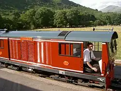 An experimental B-B Diesel hydraulic locomotive acquired by the railway in 1961 from the Romney, Hythe & Dymchurch Railway, who had trialled it and found it not powerful enough. It was built in 1956 by Charles Lane of the Royal Anchor hotel in Hampshire. It used a Ford 4D engine and a hydraulic drive, reputedly using parts from naval gun turrets, and could haul three full open bogie coaches but struggled with four. Without brakes other than putting the transmission into reverse, its ability to stop was limited until it could operate with the first R&ER air braked coaches around 1973. It was out of use in 1968 after failing to stop for cows on the crossing at Muncaster Mill. Nevertheless, it otherwise gave good service on the overnight and first morning round trip trains.