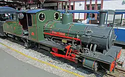 In December 1929, a 4 ft 8+1⁄2 in (1,435 mm) standard gauge 0-6-0 diesel locomotive was obtained to work the Ravenglass-Murthwaite section. It was built by Kerr Stuart (works number 4421) and had a six-cylinder, 90 horsepower (67 kW), McLaren-Benz engine. Transmission was mechanical and final drive was by roller chains. In 1955 it was sold, through a dealer, to the National Coal Board for use at Wingate Grange Colliery, Durham. A new Dorman engine of 90 horsepower (67 kW) was fitted in 1960.[13] It is now preserved at the Foxfield Light Railway,[14] restored to original external condition, and was displayed at Ravenglass in the summer of 2000.