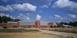 Ravenna High School was established in 1858, first meeting in a grocery store along West Main Street before moving to the new Union School building on Chestnut Street after it opened in December 1859. The first graduating class from the school was in 1862 and included two students.[3] The Union School building would serve as home to all grades in the Ravenna City Schools until enrollment growth necessitated the construction of a new high school building. The next building, which stood on what is now Highland Avenue, opened in 1883 with an addition built in 1910. The addition still stands as is known as Walnut School, though it is no longer used as a school. The next home of Ravenna High School, located at the intersection of Clinton Street and East Main Street, opened in August 1923 after an August 1921 groundbreaking. It initially contained 28 classrooms, an auditorium, and a gymnasium.[4] Additions were added to the building first in 1958–1959 with the Coll Annex on the north side and later in the late 1960s with Whittaker Hall on the south side of the building.[5] In 1960, Ravenna Township High School was merged with Ravenna High School. Prior to that time, Ravenna High School was often referred to as "Ravenna City High School" to distinguish it from the township school.[6]