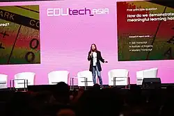 ![]() Raya Bidshahri speaking at the EduTech Asia conference in 2022 | |