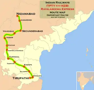 - ^ "Rayalaseema Express extended to Nizamabad". The Hans India. 6 July 2017. Retrieved 4 December 2017.