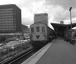 Reading South was renamed again on 11 September 1961, becoming Reading Southern.[8] The station remained independent of Reading General for several years following Nationalisation, but was transferred to Western Region control in March 1965; within a few months the two stations shared a common station manager. Soon the new management decided to spend £250,000 on improvements at Reading General, which included works to divert the Waterloo and Guildford services into the latter station, which would allow the Southern station to be closed.[23][24]