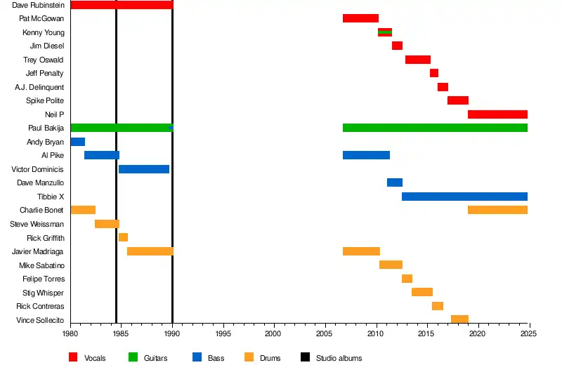 The most recent line up consisted of Scott Sturgeon of Leftover Crack, Choking Victim and Star Fucking Hipsters as singer. Paul Cripple played a few shows with this lineup. Following a return of Cripple's cancer and decline in his health, the band stopped touring and focused on recording.[4] He died from the cancer on September 21, 2024.[9]