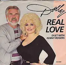 "Real Love" is a song written by David Malloy, Richard "Spady" Brannon and Randy McCormick, and recorded as a duet by American entertainers Dolly Parton and Kenny Rogers that topped the US country singles chart in August 1985.[1] It was released in April 1985 the second single and title track from Parton's Real Love album. Released after the top-ten success of "Don't Call It Love", the song became Parton and Rogers' second country chart-topper as a duet act. However, "Real Love" did not fare as well on the pop singles charts as 1983's "Islands in the Stream" had done, stalling at number 91 on the Billboard Hot 100 and number 13 on the Adult Contemporary chart.