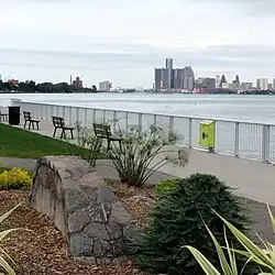 Coventry Gardens (Reaume Park) is a park in Windsor, Ontario, Canada, on Riverside Drive, in the Pillette Village. It contains the Charles Brooks Peace Fountain that floats on the Detroit River mainly in summer. Across the Detroit river to the north is Detroit's Belle Isle Park (Michigan).