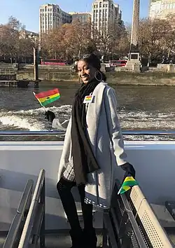 ![]() Rebecca Kwabi representing Ghana at Miss World 2019 in London | |