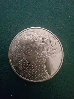 A picture of 50 pesewas coin with the image of Rebecca Naa Dedei Aryeetey