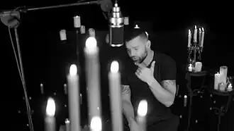 On June 24, 2020, Martin shared a photo of himself on the set of filming "Recuerdo" music video, announcing that it would be released "soon".[32] Almost four weeks later, on July 21, he shared snippets of the visual on Instagram, letting his followers know that it is set for release on July 23, 2020.[33] The black-and-white video was released simultaneously with the song's release as a promotional single on the specified date. It was filmed in compliance with the physical distance measures due to COVID-19 pandemic restrictions, and Martin recorded his scenes in Los Angeles, while Morrison's were shot in Paris. It was directed by Carlos Perez,[34] who had previously directed the videos for Martin's singles "Tal Vez",[35] "Jaleo",[36] "The Best Thing About Me Is You",[37] "Frío",[38] "Come with Me",[39] "Perdóname",[40] "Fiebre",[41] and his 2020 songs, "Falta Amor" and "Tiburones (Remix)".[42][43]
