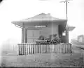It is unclear when the station was originally constructed, but an 1870 inventory of the Atlantic and Great Western Railroad listed the station in Red House as "Passenger and freight house in one building, 18x68, frame good but unpainted" and listed a water tower and 10x12 foot handcar shed at the same location.[3]