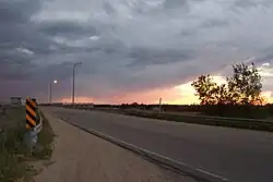 The Red River Floodway (French: Canal de dérivation de la rivière Rouge) is an artificial flood control waterway in Western Canada. It is a 47 km (29 mi) long channel which, during flood periods, takes part of the Red River's flow around the city of Winnipeg, Manitoba to the east and discharges it back into the Red River below the dam at Lockport. It can carry floodwater at a rate of up to 140,000 cubic feet per second (4,000 m3/s), expanded in the 2000s from its original channel capacity of 90,000 cubic feet per second (2,500 m3/s).[1][2]