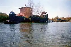 It is surrounded by an artificial lake and fortress walls in an eastern-Asian style. Inside the walls is a three-storey building. There are three watch towers. An Ethnographic Museum operated in the castle from its establishment until the mid-2000s. The castle has been rebuilt from 2010 assuming an appearance of a Western castle. The mock castle is part of an amusement complex together with the lake, and dock house.