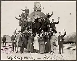 For years many sources have listed "Pilgrims" as the early Boston AL team's official nickname, but researcher Bill Nowlin has demonstrated that the name was barely used, if at all, during the team's early years.[17] The origin of the nickname appears to be a poem entitled "The Pilgrims At Home" written by Edwin Fitzwilliam that was sung at the 1907 home opener ("Rory O'More" melody).[18] This nickname was commonly used during that season, perhaps because the team had a new manager and several rookie players. John I. Taylor had said in December 1907 that the Pilgrims "sounded too much like homeless wanderers."