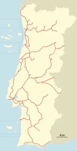 The Linha do Sul, at 274 km was the principal main line in the south of the country, but it terminated short of Lisbon on the south side of the river Tagus (Tejo in Portuguese) but it received a considerable improvement when it was extended from Pinhal Novo to Lisbon over the Ponte 25 de Abril, which was provided with an additional railway deck.