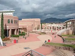Redlands East Valley is a 264,000-square-foot (24,500 m2) comprehensive high school located on a 57-acre (230,000 m2) sloping site, designed to house 2,500 students. An element in the design was a focus on the media center and its application of technology. The majority of the building exteriors are built with concrete masonry, exposed structural steel, glass, and metal roofs. The school colors and mascot were chosen to contrast cross-town rival Redlands High School, an example being how Redlands East Valley has a Wildcat and Redlands High has a Terrier.