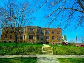 Reedsburg Municipal Hospital was designed by Frank Moulton of Flad & Moulton[1] (current day Flad Architects), in 1933. He also designed South School. The hospital was built in the Georgian Revival style. Reedsburg Municipal Hospital served as the hospital for the city of Reedsburg from 1933 until 1976, when it was replaced by a new hospital building. The building continued to be used as a facility for drug and alcohol abuse victims, alongside people with developmental disabilities.[2] In 1996 the building was closed, and was going to be torn down. This was highly unpopular, and with strong local support, the hospital was saved from demolition. A developer bought the building and remodeled the interior, making 24 senior apartments. A garage building was added during the remodel. The Reedsburg Municipal Hospital is a part of the Park Street Historic District.