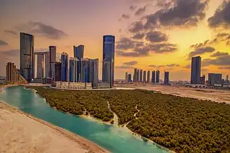 ![]() Al Reem Island skyline and mangroves seen on the northern side of the island. | |
