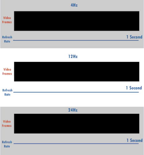 The refresh rate, also known as vertical refresh rate, vertical scan rate or vertical frequency in reference to terminology originating with the cathode-ray tubes (CRTs), is the number of times per second that a raster-based display device displays a new image. This is independent from frame rate, which describes how many images are stored or generated every second by the device driving the display. On CRT displays, higher refresh rates produce less flickering, thereby reducing eye strain. In other technologies such as liquid-crystal displays, the refresh rate affects only how often the image can potentially be updated.[1]