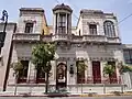Located right in front of the Cathedral and the Plaza Patria, this characteristic building has diverse architectural elements, from baroque to neoclassical styles: broken pediments, semicircular arches, segmental arches and lintels with circular pediments, among others.[80] In this building the balconies stand out for their artistic ironwork, as well as some French style details, with a worked and intricate masonry work in the columns, frames and lintels,[81][82] as well as the craftsmanship, especially the reliefs of heads, such as the one in the corner opening of the facade, which is in an excellent state of preservation.[83]
