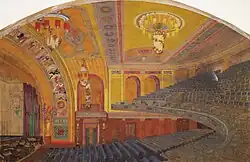 The building was designed by architect Robert Atkinson in the art deco style, with interiors by Walpole Champneys and murals by Walter Bayes. The proscenium was designed by Lawrence Preston of Brighton College of Art. There was one screen, with 2,024 seats.[1]