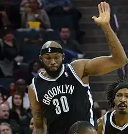 While Nets player Kris Humphries was out with an injury, Evans was given the opportunity to start. He remained in the starting lineup afterwards, as the Nets decided to start Evans over Humphries.[15] On March 27 in a game against the Portland Trail Blazers, Evans notched career highs in both points (22) and rebounds (26) as the Nets won 111–93. 2 days later in a game against the Denver Nuggets, Evans had another great night with 15 points and 16 rebounds but the Nets lost 109–87. Evans said he heard a teammate say to Nets coach P. J. Carlesimo to bench Evans because of lack of offensive production. Evans used this as inspiration to be more aggressive on the offensive end of the floor.[16] In his first season with the Nets, Evans played 80 games with 56 starts, and for the second time in his career, he averaged over 10 rebounds a game with 11.1.