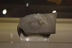 The West Room was the shrine of Mars, sacrarium Martis, in which the ancilia (shields) of Mars were stored. Here, too, stood the lances that were consecrated to Mars, the hastae Martiae. According to legend reported by Aulus Gellius, if the lances started vibrating something terrible would happen.[5] According to Cassius Dio (XLIV.17.2), they are said to have vibrated on the night of 14 March 44 BC when, in spite of the vibrating lances, Caesar, Pontifex Maximus at the time, left the Regia to attend a meeting of the Senate, where he was assassinated.[6]