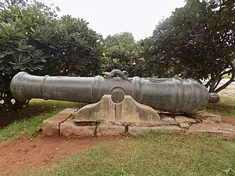 The Mughal Emperor Babur is popularly credited with introducing artillery to India, in the Battle of Panipat in 1526, where he decisively used gunpowder firearms and field artillery to defeat the much larger army of Ibrahim Lodhi, the ruler of the Delhi Sultanate, thus not just laying the foundation of the Mughal Empire but also setting a precedent for all future battles in the subcontinent. However, evidence of earlier use of guns by Bahmani kings in the battle of Adoni in 1368 and King Mohammed Shah of Gujarat in the fifteenth century have been recorded.[3] Then came the Portuguese, who for the first time introduced the man-o-war (ships) armed with cannons and introduced the concept of command of the seas in the Indian Ocean region. However, it was documented by Portuguese travellers that artillery guns were widely in use in the Indian subcontinent.[4] By the early 16th century, Zamorin, the ruler of Calicut, had begun to emulate the Portuguese and began to arm his ships with naval gun pieces.[5]