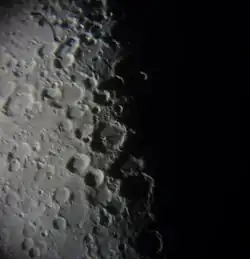 Regiomontanus is named after the 15th century German astronomer and mathematician Johannes Müller von Königsberg, known as Regiomontanus.[2] Like many of the craters on the Moon's near side, it was given its name by Giovanni Riccioli, whose 1651 nomenclature system has become standardized.[3] Earlier lunar cartographers had given the feature different names. Michael van Langren's 1645 map calls it "Christinae Reg. Suec." after Christina, Queen of Sweden.[4] And Johannes Hevelius grouped it with Purbach and Walther as "Mons Libanus" after Mount Lebanon.[5]