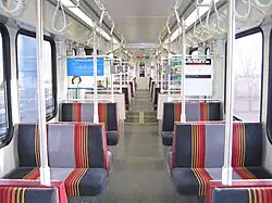 RTD's first line, the 5.3-mile (8.5 km) Central Corridor between the 30th & Downing and the I-25 & Broadway stations (now part of the D Line and L Line) opened on Friday, October 7, 1994.[18] It operated with free service for that first weekend, with revenue service starting on October 10. More than 200,000 passengers rode the new system during its opening weekend, when the fleet comprised only 11 Siemens SD-100 rail cars.[19]