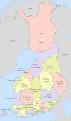 - ^ "Suomen hallintorakenteeseen ja maakuntauudistukseen liittyviä termejä sekä maakuntien ja kuntien nimet fi-sv-en-(ru)" (PDF). vnk.fi. pp. 8–9. Archived (PDF) from the original on 11 June 2022. Retrieved 23 August 2019.