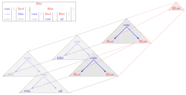 BList ⇒ cons(Bool,BList) ⇒ cons(false,cons(Bool,BList)) ⇒ cons(false,cons(true,nil)).