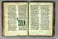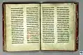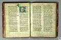Out of a total of 47 double-sided sheets, 16 sheets are written in Cyrillic (as a fragment) and 31 sheets in the Glagolitic alphabet.[1][2] The book used to have a treasure binding, richly decorated and embellished with gold, precious stones, and relics, among them a fragment of the True Cross.[2] The precious stones and the relics probably disappeared from the book cover during the French Revolution. It features six historiated initials in the Glagolitic part and several ornamental capitals at the start of sections.