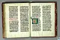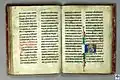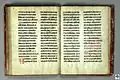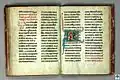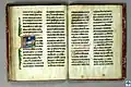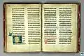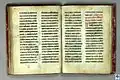 It was first recorded in the last half of the 14th century, in the time of Charles IV, who gave it to the just-founded Emmaus monastery in Prague (Czech: Emauzský klášter, Na Slovanech, Emauzy), where the Slavonic liturgy was to be celebrated (the church of the monastery was dedicated to Saints Cyril and Methodius, St. Vojtěch, St. Procopius, and St. Jerome, who was considered to have translated the Gospels from Greek to the Old Slavonic language).[1] The text was believed to have been written by the hand of St. Procopius, abbot of Sázava Monastery. It was probably lost from Prague in the time of the Hussite Wars; after some time (1451[3]) it appeared in Istanbul, where the books by St. Jerome were said to be kept.[2] In 1574, it was bought by Charles, Cardinal of Lorraine (from the Patriarch of Constantinople, whom he knew from the Council of Trent[2]), and donated to Reims Cathedral.[1] Because the book was nicely decorated and it was believed it had been scribed by St. Jerome, the manuscript began to be used in the coronation ceremony of French kings, who took the oath of the Order of the Holy Spirit by touching the book.[1]