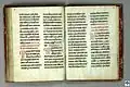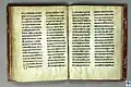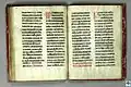 The Cyrillic part includes a pericope from 27 October to 1 March following the Greek Catholic rite.[2] The Glagolitic part covers pericopes from Palm Sunday to the Feast of the Annunciation (March 25) following the Roman Catholic rite.[2] In a special postscript a Bohemian monk noted: "The Year of Our Lord 1395. These Gospels and Epistles were written in the Slavic language ... the other part was written by the hand of St. Procopius, abbot, and this text was offered by Charles IV, Emperor of the Romans, to the Slavic monastery, in honor of Saint Jerome and Saint Procopius, God, please give him eternal rest. Amen."[2]