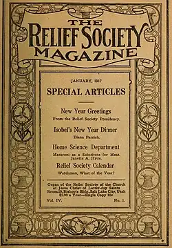 Relief Society Magazine was the official publication of the Relief Society of the Church of Jesus Christ of Latter-day Saints (LDS Church) from 1915 to 1970. It succeeded the earlier and privately owned Woman's Exponent, which was begun in 1872. The magazine was an important publishing outlet for Utah women, and was run by women editors. The founding editor, Susa Young Gates, edited the magazine from 1915 to 1922. The December 1970 issue of the Relief Society Magazine was its last. The LDS Church discontinued the magazine as part of the implementation of the Priesthood Correlation Program. Thus, the magazine and several others within the church were replaced by the Ensign.[1]