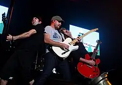 Relient K at House of Blues in Cleveland performing in May 2007; from left to right: Jon Schneck, Matt Hoopes, Matt Thiessen, Dave Douglas, and John Warne  | |
