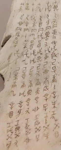 ![Scapula inscribed during the reign of Wu Ding[129] – Yinxu Museum, Anyang](./_assets_/Shang_dynasty_inscribed_scapula.jpg)