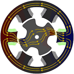 The rotor operates at synchronous speeds without current-conducting parts. Rotor losses are minimal compared to those of an induction motor, however it normally has less torque.[2][3]