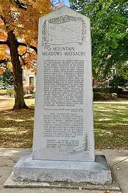 - ^ a b "Mountain Meadows Association – 1990 MONUMENT". Mountain Meadows Association. 2007. Archived from the original on December 20, 2007. Retrieved August 21, 2007.