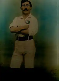 René Camard was born in the 7th arrondissement of Paris on 8 February 1887, as the son of Jean-Baptiste (1857–1912) and Elisabeth Marie Lasserre.[5] He quickly devoted himself to sports, excelling in several of them, such as running, shooting, athletic competitions, swimming, cycling, Basque pelota, and especially football, becoming a member of Red Star FC in 1903, aged 16.[6] However, he did not neglect his studies, obtaining his primary school certificate, a certificate of studies from the teachers' association, and a diploma from the Voltaire college in Paris.[6]