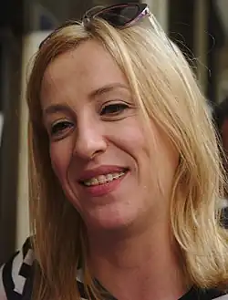 Following the elections, Dourou was appointed to the Shadow Cabinet of Alexis Tsipras, where she was made responsible for foreign policy.[6] In the beginning, Dourou had to cope with prejudices against female politicians, with a Kathimerini commentator railing that the "nice blonde" be rather "a qualified kindergarten teacher" than qualified on foreign policy issues.[7] However, she fought her way through male dominance and sexism, defining Syriza's defence and foreign policy, as to be increasingly described her party's "rising star".[4]