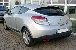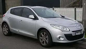 The Renault Mégane (French pronunciation: [meɡan]), also spelled without the acute accent as Megane,[1] especially in languages other than French, and also known as the Renault Megavan for an LCV in Ireland, as the Renault Scala in Iran and as the Renault Mégane Grandcoupé for the saloon in Israel, Palestinian Authority and Serbia for certain generations,[2][3][4][5] is a small family car produced by the French car manufacturer Renault for the 1996 model year, and was the successor to the Renault 19. The Mégane has been offered in three- and five-door hatchback, saloon, coupé, convertible and estate bodystyles at various points in its lifetime, and having been through four generations is now in its fifth incarnation.