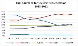 According to data from the US Energy Information Administration, renewable energy accounted for 8.4% of total primary energy production[1] and 21% of total utility-scale electricity generation in the United States in 2022.[3]