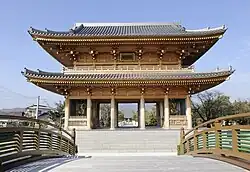 Renge-in Tanjō-ji (蓮華院誕生寺) is a Buddhist temple of the Shingon Risshu, or Shingon-Vinaya Buddhism,[1] in Tamana, Kumamoto Prefecture. It is the head temple of the Shingon Ritsu school in Kyūshū and a branch temple of Saidai-ji (西大寺) in Nara (奈良). It venerates Mahābodhisattva Kōen (皇円大菩薩, Kōen Daibosatsu) as its patron deity. The temple stands on the site of Jōkō-ji Renge-in which was founded either at the end of the Heian period or the beginning of the Kamakura period and burnt down during the wars of the Sengoku period. The first abbot Zeshin Kawahara (1896 - 1977) was instructed through a spiritual communication by Kōen to restore Jōkō-ji Renge-in, which he accomplished in 1930 and renamed it Renge-in Tanjō-ji ("Birth Temple") in honor of the fact that it stands on the birthplace of Kōen.