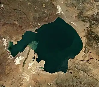 Renqingxiubu , or Renqingxiubucuo (Chinese: 仁青休布错; pinyin: Rénqīng Xiūbù Cuò), also known as Rinchen Shubtso (Tibetan: རིན་ཆེན་ཤུབས་མཚོ་, Wylie: rin chen shubs mtsho, ZYPY: Rinchen Shuptso), is a salt lake in Zhongba County in the Shigatse Prefecture of the Tibet Autonomous Region of China. It is located about 45 kilometres northwest of Taruo Lake and southeast of Ang Laren Lake.[2] It is 21.5 km long and 16.4 km wide and has an area of 187.1 square km.[1]