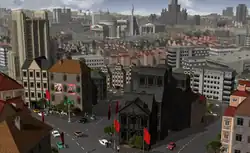 A screenshot of Republic illustrating the level of detail at the street level using the Totality Engine.