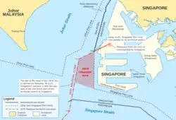 In October 2018, Malaysia extended its Johor Bahru port limits past its 1979 maritime claims into waters off the reclaimed Tuas sector which Singapore claims as its own. Singapore responded by extending its port limits to overlap with Malaysia's new port limits. As Malaysia deployed elements of the Malaysia Coast Guard and government ships to enforce their claims, the RSN's littoral mission vessels were stationed on location 24/7 with the Police Coast Guard.[57] Both side eventually suspended the overlapping port limits and withdrew from the area following successful negotiations.[58][59]