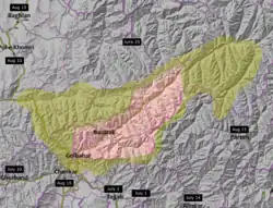 As of 3 September 2021, in addition to the opposition in the Panjshir, there were also districts in the centre of Afghanistan that still resisted the Taliban, supported by ethnic and religious minorities.[59] On 6 September, the Taliban took control of most of the Panjshir province, with resistance fighters retreating to the mountains to continue fighting within the province.[19][60] Clashes in the valley mostly ceased mid-September,[26] while resistance leaders Amrullah Saleh and Ahmad Massoud fled to neighboring Tajikistan.[61][10] Despite these developments, NRF holdouts continued to fight, still waging a guerrilla campaign in several provinces including Baghlan, Balkh, Badakhshan, and Faryab by early 2022.[15] In addition, an independent anti-Taliban militia still held territory in Samangan Province as of December 2021.[14][8]