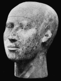 Reserve heads (also known as "Magical heads" or "Replacement heads", the latter term derived from the original German term "Ersatzköpfe") are distinctive sculptures made primarily of fine limestone that have been found in a number of non-royal tombs of the Fourth Dynasty of Egypt; primarily from the reigns of pyramid-building pharaohs Khufu to Khafre, circa 2551–2496 B.C.[1] While each of the heads share characteristics in common with each other (and some examples may be more caricature than reflecting a true-life appearance), the striking individuality of the pieces makes them some of the earliest examples of portrait sculpture in existence. Their purpose is not entirely clear; the name comes from the prevalent theory first put forward in 1903 by the German Egyptologist Ludwig Borchardt, that the head was to serve as an alternate home for the spirit of the dead owner should anything happen to its body.[1]