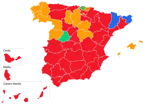 | Melilla | 45.9 | 1 | 36.2 | − | 8.4 | − | 1.0 | − | ||||||||||||||||||||