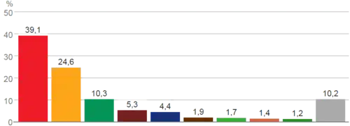 | Galicia | 29.6 | 10 | 41.7 | 15 | 10.2 | 2 | 1.3 | − | ||||||||||||||||||||